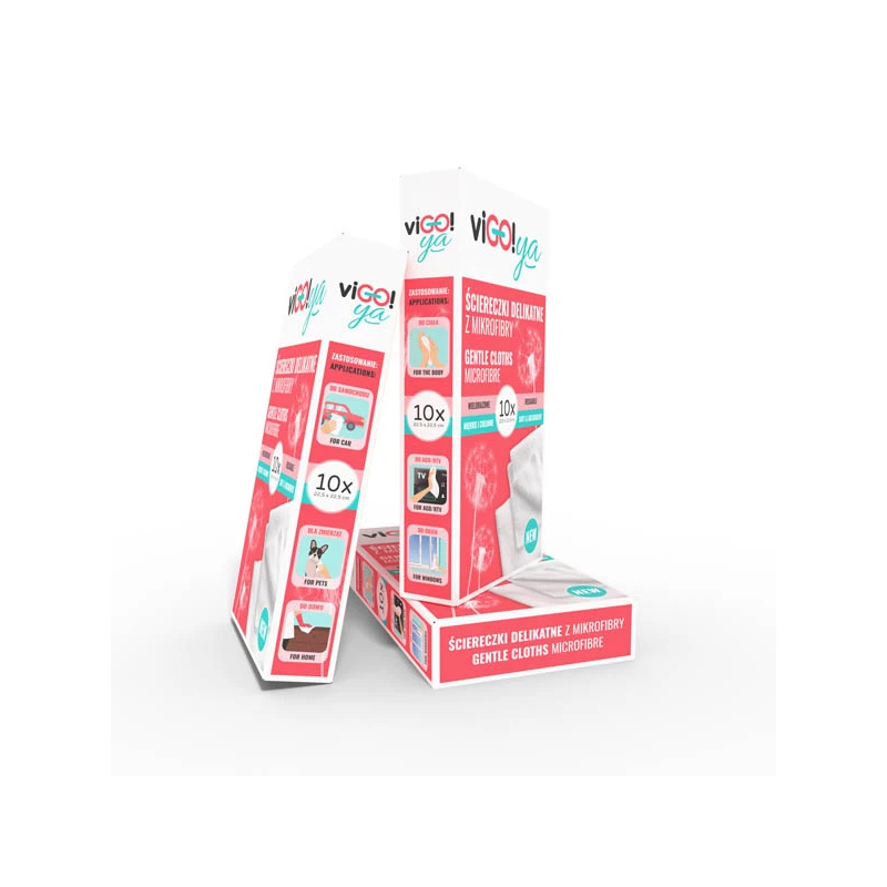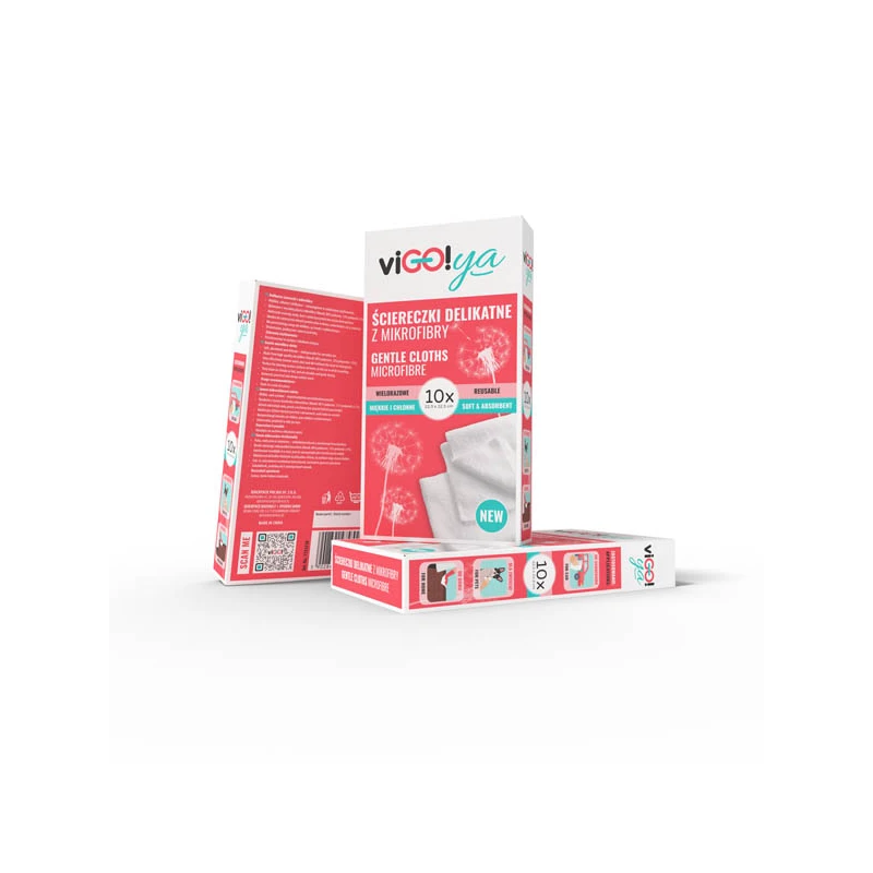 viGO! YA nježne krpe od mikrovlakana – mekoća koju ćete obožavati! Otkrijte udobnost svakodnevne čistoće s viGO! YA krpama. Mekane, upijajuće i nevjerojatno nježne, učinkovito uklanjaju vodu, prašinu i prljavštinu – bez deterdženata! Izrađene od visokokvalitetnih mikrovlakana (88% poliester, 12% poliamid), ne ostavljaju tragove ni dlačice, izdržljive su, brzo se suše i mogu se ponovno koristiti. Savršene su za čišćenje doma, automobila, putovanja i za njegu kože. Praktično pakiranje sadrži 10 krpa dimenzija 22,5 x 22,5 cm – uvijek pri ruci kada vam zatrebaju. Univerzalne. Praktične. Nezamjenjive.